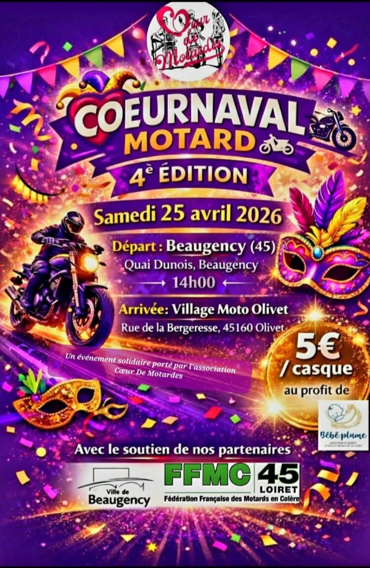 Le Coeurnaval Motard prendra son départ de la promenade de Barchelin le samedi 25 avril à 14h.