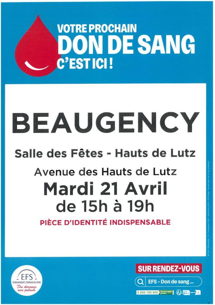 Don du sang le mardi 21 avril